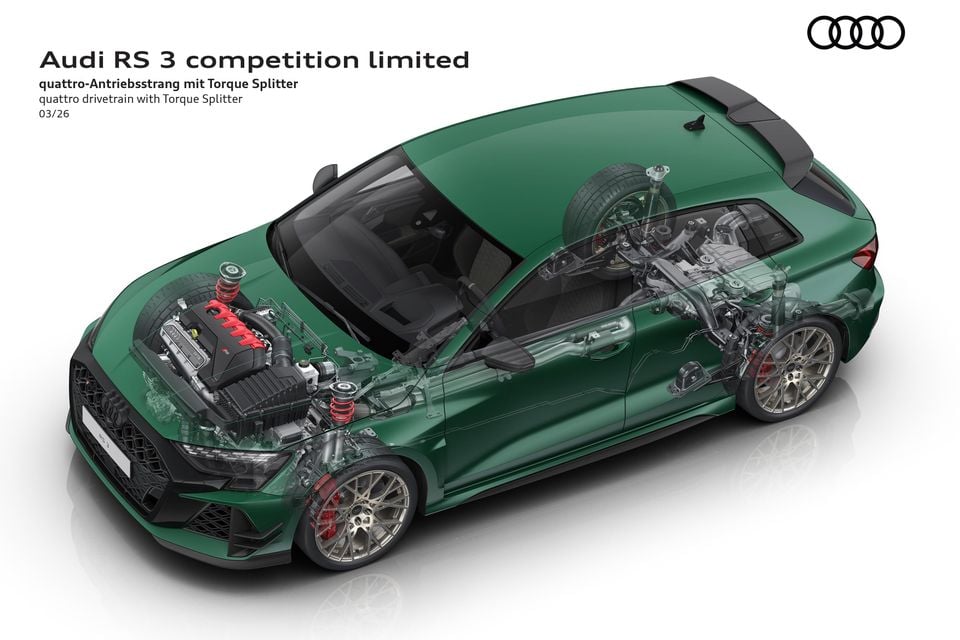 Interestingly, when it comes to the very thing being celebrated by the 2026 RS3 Competition Limited – its turbocharged 2.5-litre five-pot engine – buyers will get no more power than the standard car.