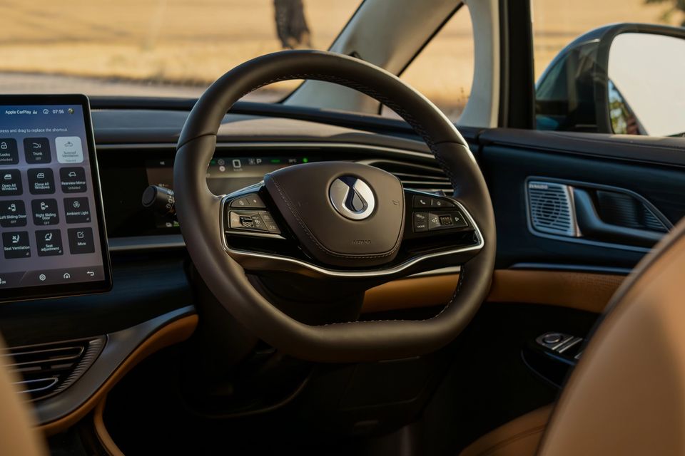 The Denza D9 is available with either single-motor front-wheel drive or dual-motor all-wheel drive powertrains.