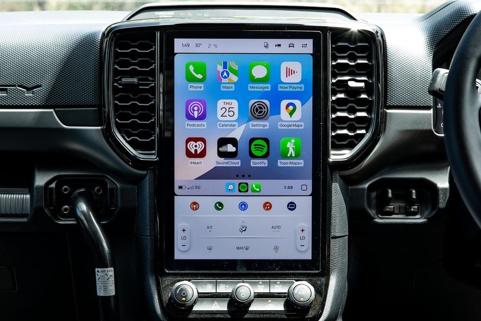The bank of buttons for climate control and fan settings below the screen makes living with the Ranger far easier than some of those utes in which you have to do more through the touchscreen. Yes, I’m talking about the related Volkswagen Amarok, as an example.