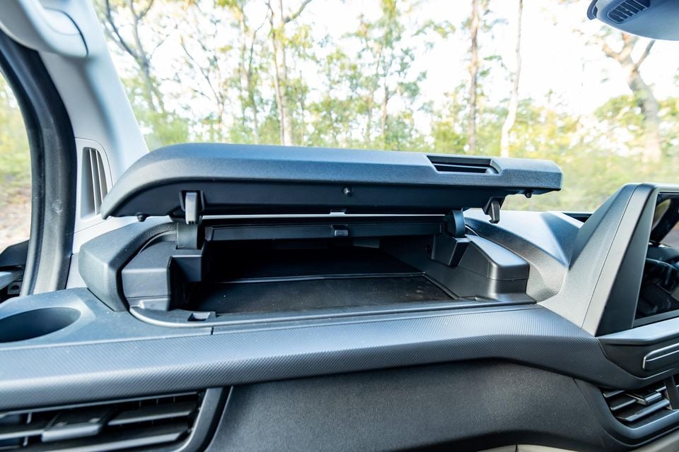 In the doors there are multiple tiers of storage including bottle holders down the bottom, and while it is all hard plastic, it looks decent because of the two-tone finish. In front of the passenger there is a lockable glovebox and an additional top storage box as well.