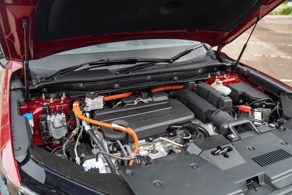 The e:HEV RS is currently the only CR-V variant available with a hybrid powertrain, which combines a 2.0-litre four-cylinder petrol engine with a continuously variable automatic transmission (CVT) that houses a pair of electric motors. Unlike some other rivals, the system only drives the front wheels.