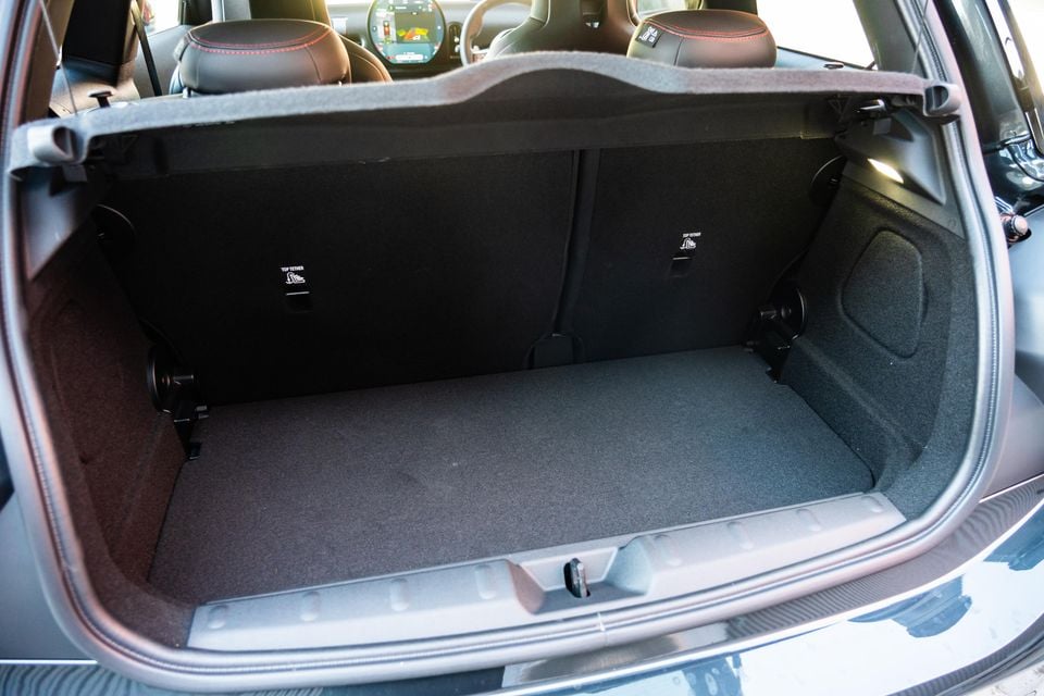 Though the cabin feels quite airy, storage options are somewhat limited. There’s a passenger-side glovebox and slim door bins, while the centre console houses two cupholders and Mini’s unique lidded storage box.