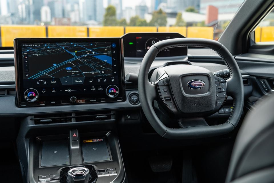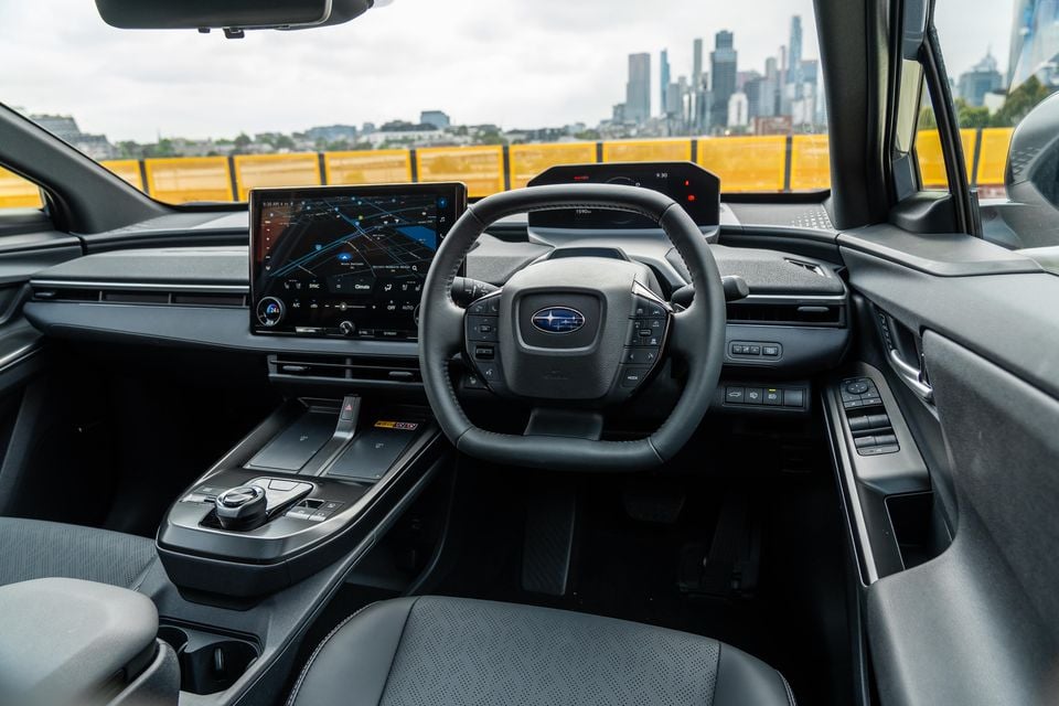 Fortunately, the Solterra’s steering is direct and has plenty of feedback, while also feeling fairly heavy, making the car feel all the more substantial without compromising manoeuvrability.