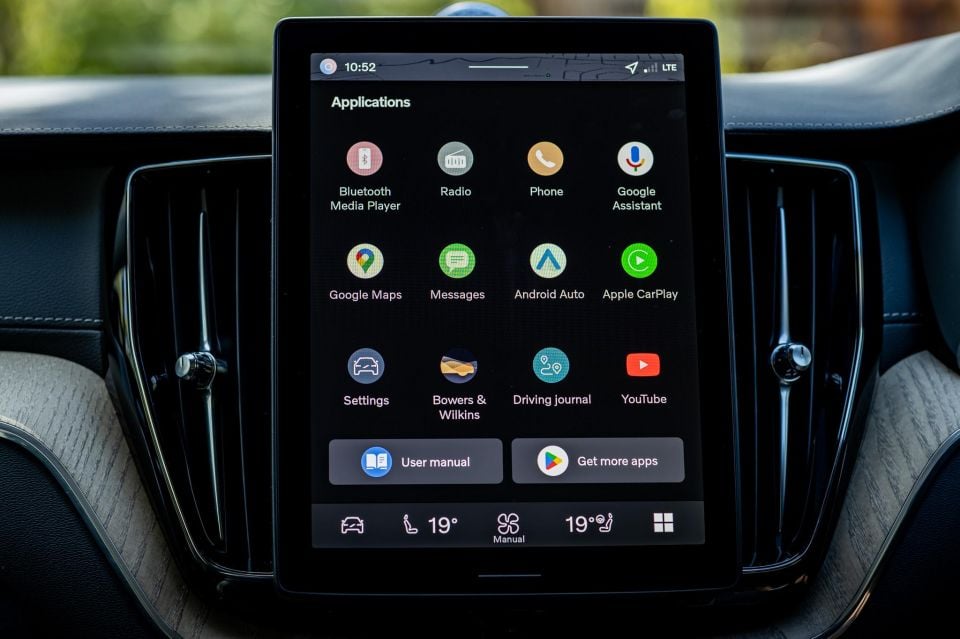 Dual-zone climate and most of the management of the climate system is done on screen as well, though there are demister buttons below the display, where you’ll also find a volume dial, play/pause button, and skip/track buttons.