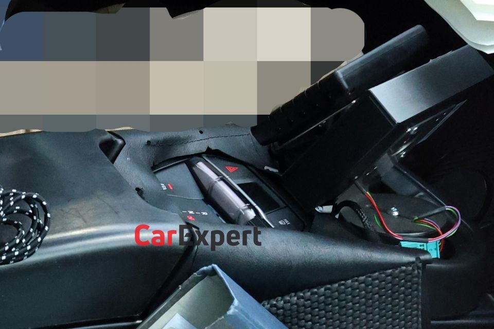 The only physical switches visible are in the centre tunnel, and they control the transmission, electronic parking brake, hazard lights, and demister.