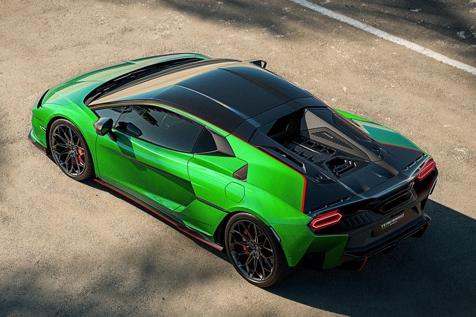 The Temerario’s surfacing is still defined by sharp lines and tension, but with a more human, athletic quality — technical components wrapped in sculpted musculature rather than pure origami aggression.