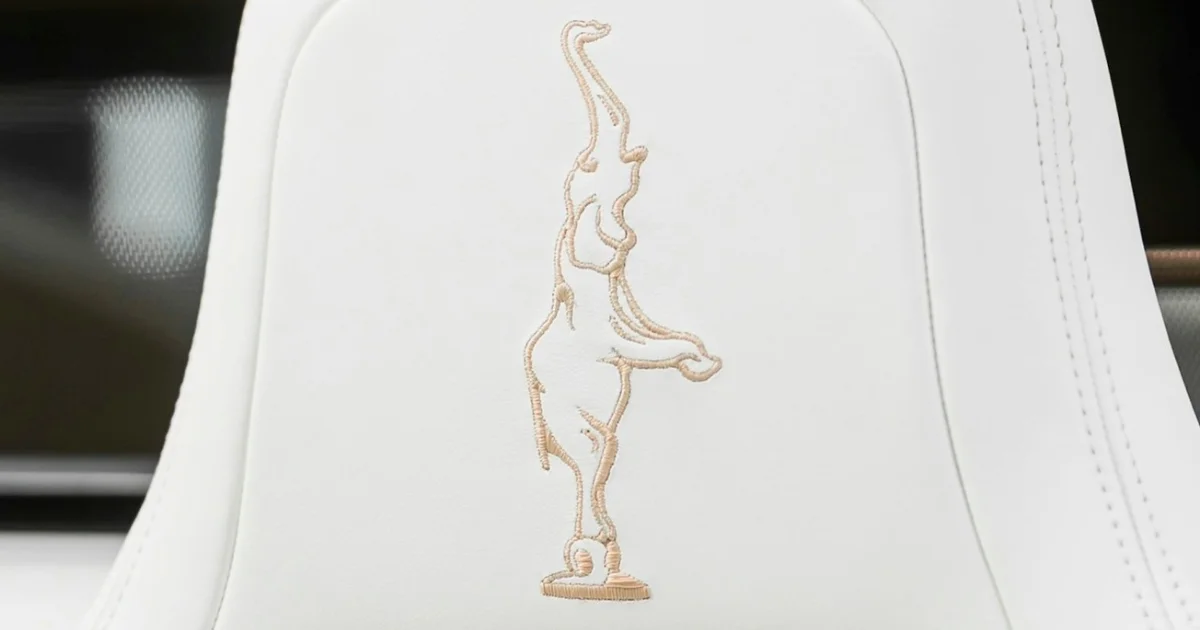 The seats’ backs are stitched with the iconic “Dancing Elephant” image, which was used on some special Bugatti right before the hood ornament was invented. The image was originally sculpted by Rembrandt, who was Ettore Bugatti’s younger brother, and it was first used as the opulent Type 41 Royale’s hood ornament.
