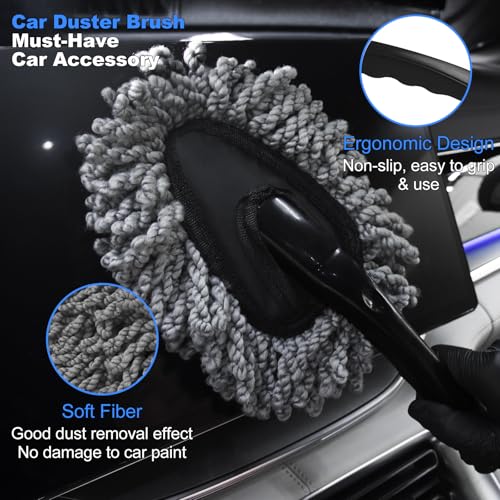 【Car Duster Brush】The car duster interior is made with imported soft bristles and no metal parts, ensuring your car’s surfaces are cleaned without the risk of marring or scratching. The microfiber duster brush with a large surface area and comfortable handle allows for quick and efficient dusting of car interiors, making your cleaning routine faster and more effective