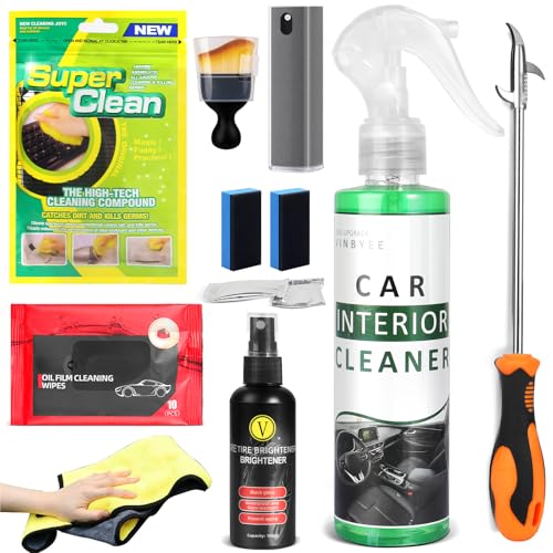 Specification: 11Pcs Car Interior Cleaning Kit | Car Seat Cleaner, Tire Shine Spray, Screen Cleaner, Tire Stone Cleaning | Car Care Kit for Car, Truck, SUV, RV | Car Detailing Kit