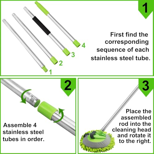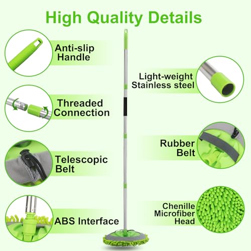 62 ” Car Wash Mop – Car Cleaning Mop with Long Handle Stainless Steel Pole for RVs, SUVs, Trucks and Buses (Green)