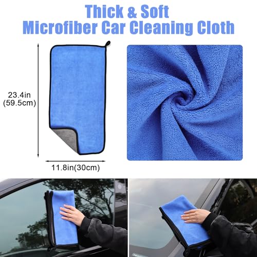 Specification: anngrowy 56.7″ Car Wash Brush Mop Kit Mitt Sponge with Long Handle Car Cleaning Supplies Kit Tools Car Washing Duster Exterior Scratch Free, Chenille Replacement Head Extension Pole (Blue Set)
