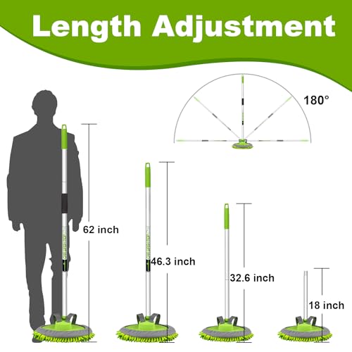 Specification: anngrowy 62″ Microfiber Car Wash Brush Mop Kit Mitt Sponge with Long Handle Car Cleaning Supplies Kit Duster Washing Car Tools Accessories, 1 Chenille Scratch-Free Replacement Head Aluminum Alloy Pole