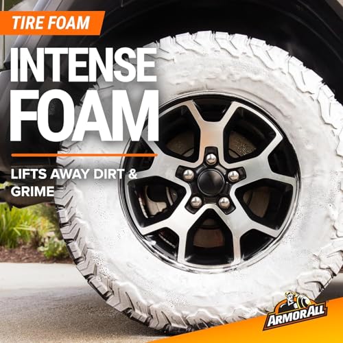 TIRES: Tire shine and cleaner delivers intense foaming action to lift away ground-in dirt and leave behind nourishing conditioners that restore your deep black tire color
