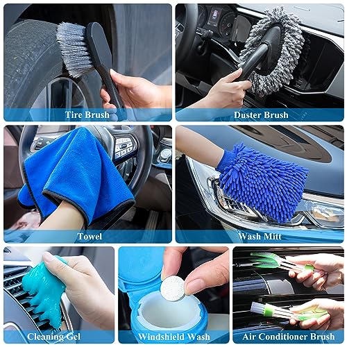 Premium Material: Other car cleaning tools are made of soft, durable materials that won’t shed lint or leave marks on the car’s surface. Waterproof roomy wash mitt helps protect your hand all the way and reduce the damage to your skin. 5 gallon collapsible bucket can meet car washing anywhere. Tyre brushes with soft, dense bristles to clean dirt without damaging the surface. The car cleaning gel easily picks up dirt from crevices