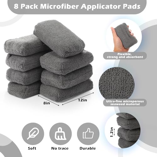 Specification: Baderke 8 Pack Microfiber Applicator Pads, Car Wash Sponge, Rectangular Polishing Pad, Microfiber Sponge and Cleaning Pads, Cleaning Pads for Car Detailing(Gray)