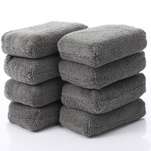 Baderke 8 Pack Microfiber Applicator Pads, Car Wash Sponge, Rectangular Polishing Pad, Microfiber Sponge and Cleaning Pads, Cleaning Pads for Car Detailing(Gray)
