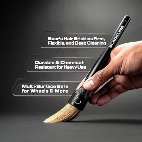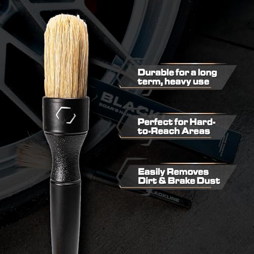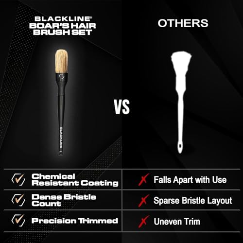 Blackline Car Care Boar Hair Brushes- Luxury Car Detailing Brush Set for Interior and Exterior – Best Auto Detailing Brushes – Premium Hair Car Detailing Brushes (Boars Hair Bristles)