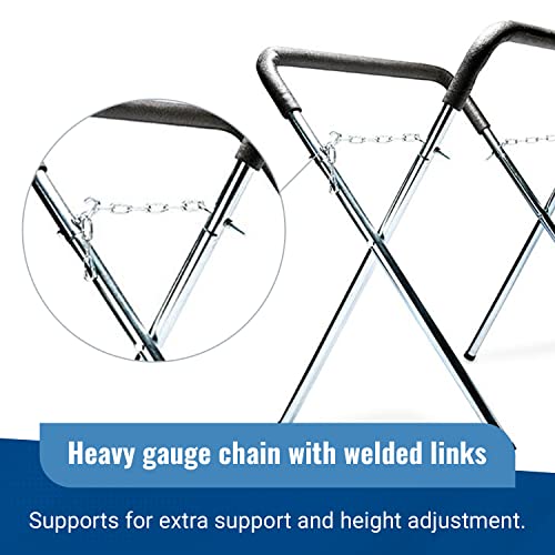 BEST USE: Our work stand offers the safety and convenience that you need to do your job when working on fenders, doors, hoods, panels and more. Heavy gauge chain with welded links supports for extra support and height adjustment.