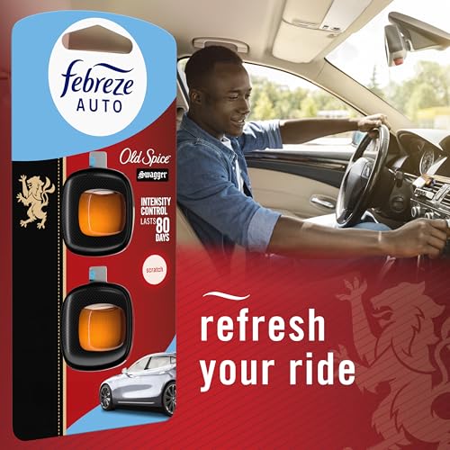 Kick car odors to the curb and enjoy up to 40 days of consistent scent with Febreze AUTO. While other car refreshers start off like a floral punch in the face, Febreze smells just right, right away. You’ll get that first-day Febreze fresh for up to 40 days courtesy of its patented Steady Release Technology. This car air freshener vent clip is a breeze to install: Just unfold the clip until you hear a click, then clip it to your vent. It uses your car’s fan to circulate an even scent through your entire vehicle. With the breezy, island scent of Old Spice Swagger, your ride is now a day at the beach. These tiny car deodorizers are made with odor fighters that fight any car stink with a scent that lasts. So forget those overwhelming, fade-too-soon fresheners and enhance every drive with the long-lasting freshness of Febreze AUTO. Want a fresh that lasts at home, too? Try Febreze Fade Defy PLUG.