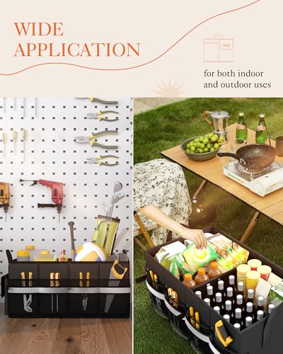 DURABLE MATERIALS: Made of sturdy Oxford cloth with reinforced stitching on high-wear areas, this car organizer for trunk is built to last through heavy use. The thickened base panel and handles enable this product to bear over 60lb capacity.
