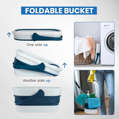 MAVRIZ Car Wash Kit with Bucket Portable Car Detailing Kit with Foldable Bucket, Chenille Wash Mitt, Tire Dressing Applicator Pad, Car Window Cleaning Tool with 2 Replacement Pads