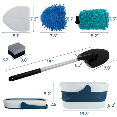 Specification: MAVRIZ Car Wash Kit with Bucket Portable Car Detailing Kit with Foldable Bucket, Chenille Wash Mitt, Tire Dressing Applicator Pad, Car Window Cleaning Tool with 2 Replacement Pads