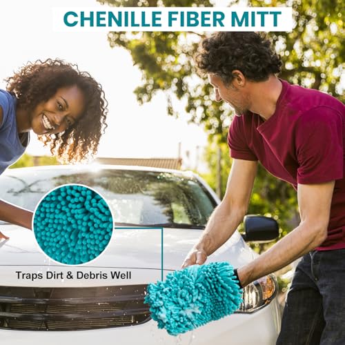 【Chenille Car Wash Mitt】has excellent absorbency, softness, and cleaning power. It traps dust and dirt without scratching the car paint. Made of high-quality chenille fiber, this car wash glove can be washed many times, and last for long. It is an ideal choice for detailed cleaning tasks.