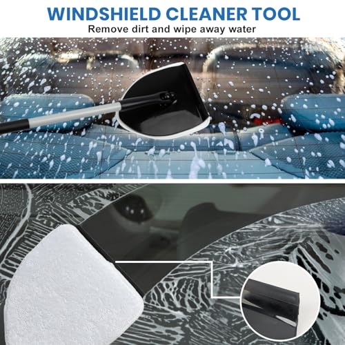 【2 in 1 car window cleaner tool】18″ car windshield cleaner with 360° rotating head allows easy maneuver on all surfaces. The refill pads are easy to put on and off, they’re soft and gentle on your windshield, remove dirt without leaving scratches. Built in rubber squeegee is excellent for wiping away water and leaving a streak-free and clear windshield.