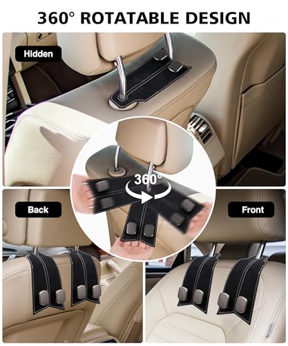 Specification: Purse Hook for Car, Car Hooks for Headrest Car Seat Hooks Purse Hanger for Car 100% Metal & Premium Leather 2025 Latest Car Organization Accessories for Bags, Purses, Phones etc (Black 2Pcs)