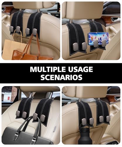 Purse Hook for Car, Car Hooks for Headrest Car Seat Hooks Purse Hanger for Car 100% Metal & Premium Leather 2025 Latest Car Organization Accessories for Bags, Purses, Phones etc (Black 2Pcs)