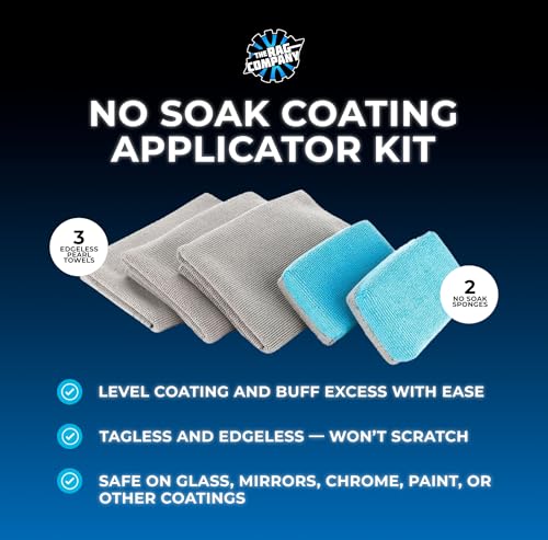 Specification: The Rag Company – No Soak Coating Applicator Kit – Microfiber Coating Sponges with Soak Barrier Plus 3 Scratchless and Edgeless 70/30 Blend Microfiber Towels for Buffing/Leveling Coatings