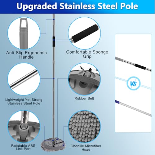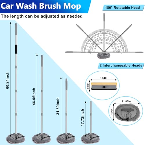 2-in-1 Multi-Purpose Car Cleaning Mop Kit: Soft bristles without scratches with protective rubber bumper. High-quality soft PVC bristles protect car surfaces from scratches during cleaning. Rubber squeegee quickly removes water stains without leaving any marks