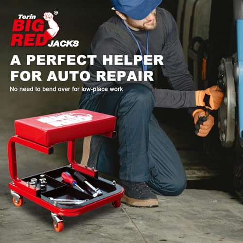 Torin TR6300 Red Rolling Creeper Garage/Shop Seat: Padded Mechanic Stool with Tool Tray Large