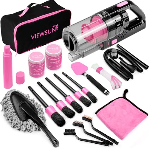 Specification: Viewsun 17pcs Car Cleaning Kit, Pink Car Interior Detailing Kit with High Power Handheld Vacuum, Detailing Brush Set, Windshield Cleaner, Cleaning Gel, Complete Auto Accessories for Women Gift