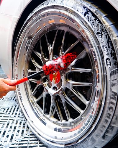 EXTRAORDINARY CLEANING EFFECT: The thick fibers of these synthetic woolies brushes hold tons of cleaning liquids, quickly and easily scrub away grim from your wheels. And the tire brush can easy removes embedded dirt from tires